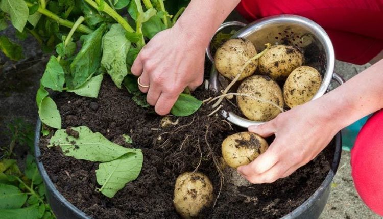 There is no need to buy special potato growing bags or a potato barrel because virtually any container can be used to grow potatoes in as long as it is at least 30cm or 12 inches in diameter and depth. Buckets can be used, large flower pots, flower buckets from the local supermarket, dustbins and even empty compost bags turned inside out. But, you must ensure to make drainage holes in the bottom.